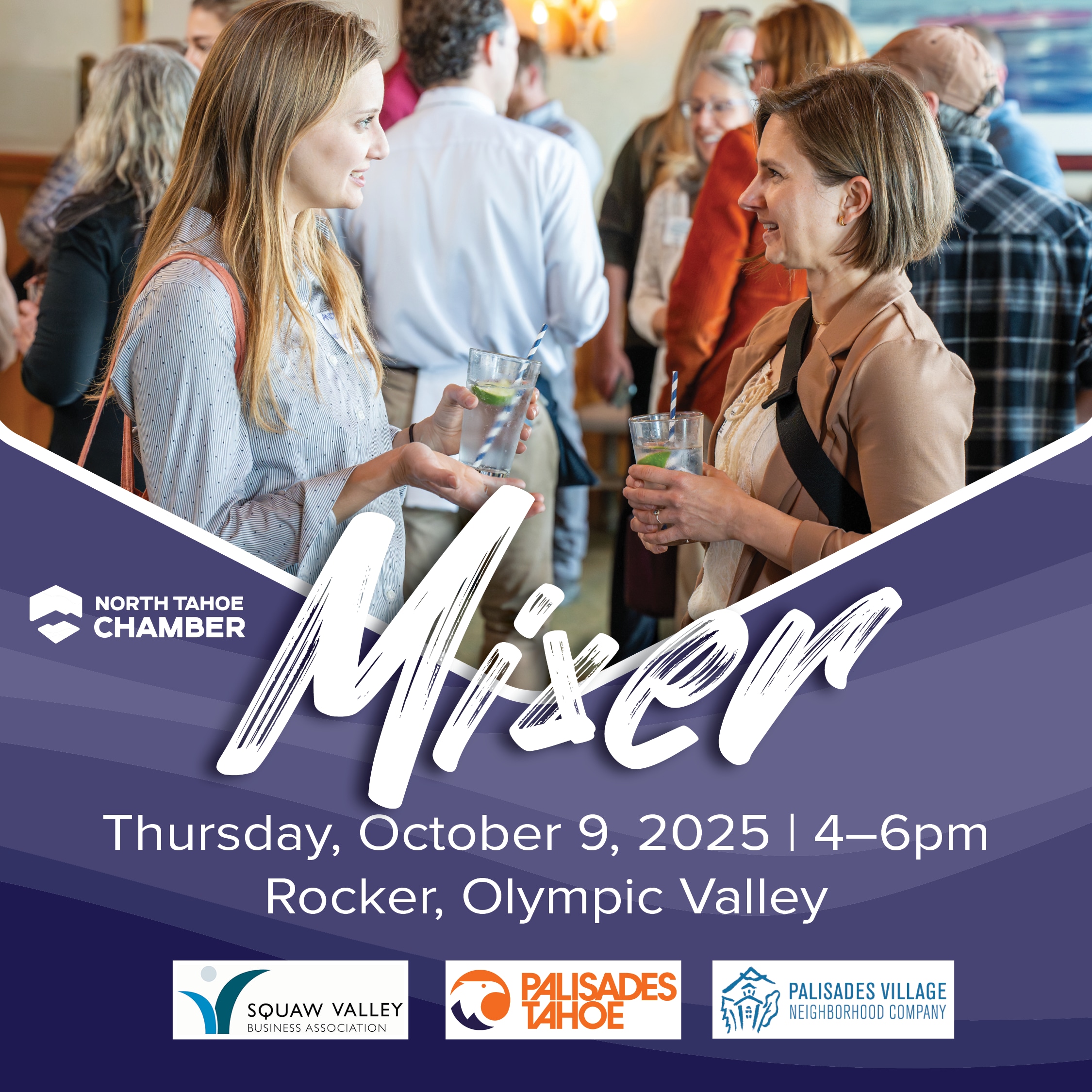 Join us for our next Chamber Mixer in partnership with Palisades Tahoe, Palisades Village Neighborhood Company and the Squaw Valley Business Association at Rocker in Olympic Valley, the go-to gathering spot in the village. With delicious food, appetizers, and a full bar featuring 13 local and regional beers on tap, Rocker offers the perfect mix of energy, history, and local flavor. Named for the ski design pioneered by Shane McConkey, Rocker celebrates Palisades Tahoe’s outdoor culture and the legends it inspires.